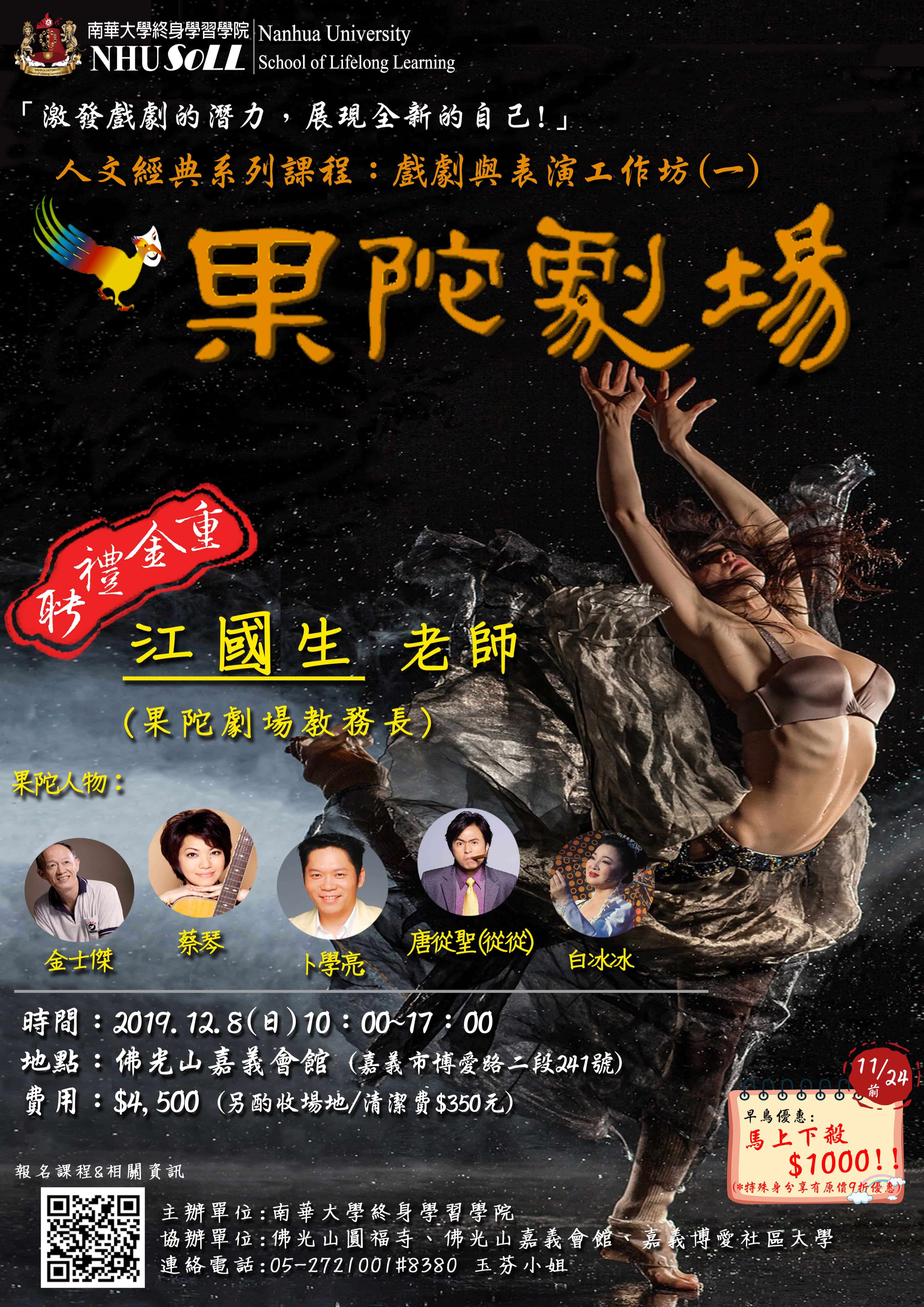 一、授課老師:江國生老師(果陀劇場教務長)。
