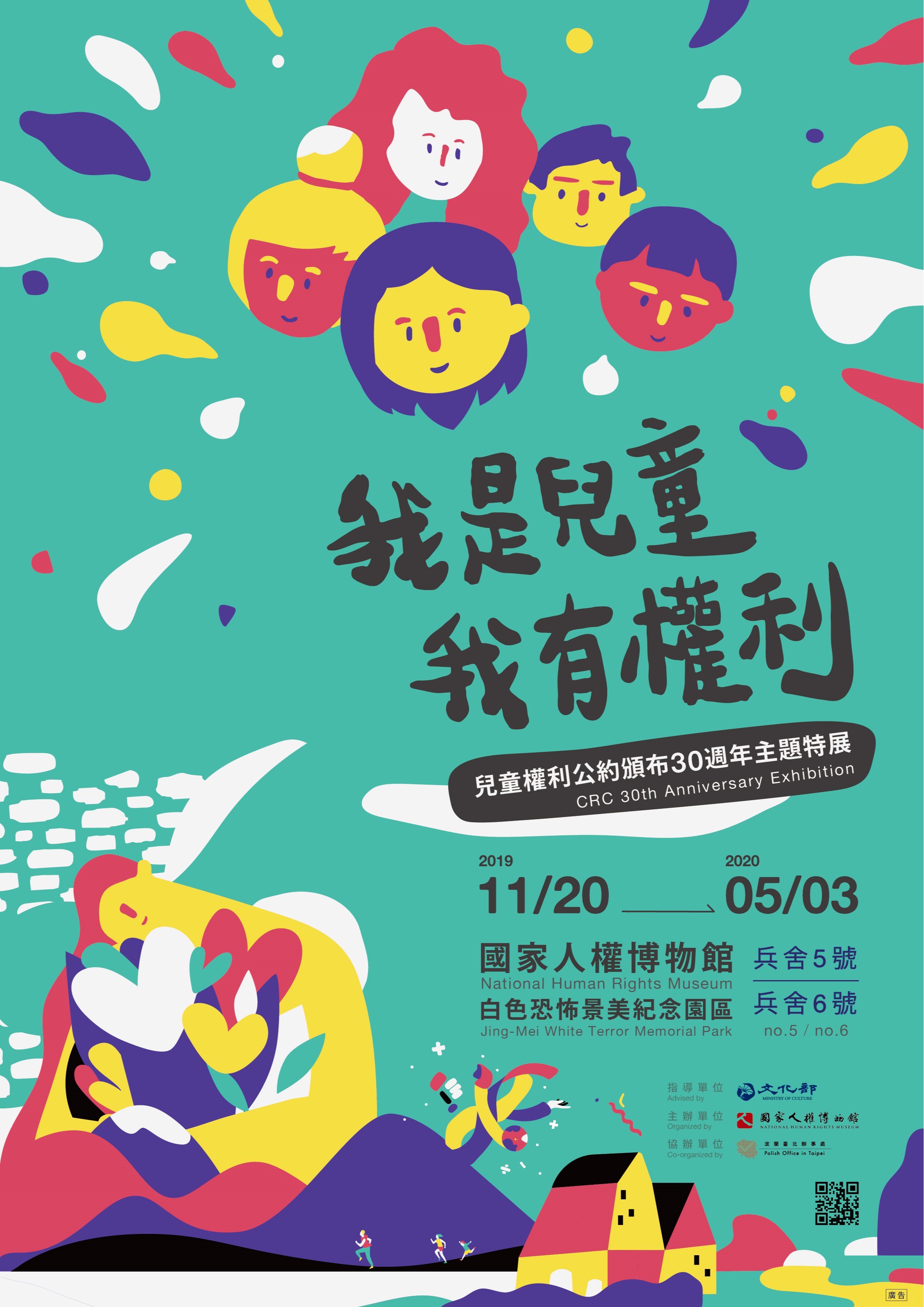 (三)展覽內容:展示兒童權利從忽視到關注的推動過程,從波蘭的兒童權利之父─柯札克為起點,認識兒童人權的核心精神與內容,並從國際間的兒童權利演進歷程,反思臺灣過去歷史上,許多未滿18歲的兒少們遭受人權迫害的狀況,喚起大眾對於兒童人權的重視。並藉由看見兒童力的國內外案例,深刻認識兒童不僅是受保護對象,更是權利主體,具有參與社會的積極性角色。以嶄新的多媒體互動展示手法,並且特別邀請16位插畫家繪製兒童權利插畫,讓觀展者從平易近人的語彙及參與式的觀展體驗中,深刻思考兒童權利的重要性與價值。