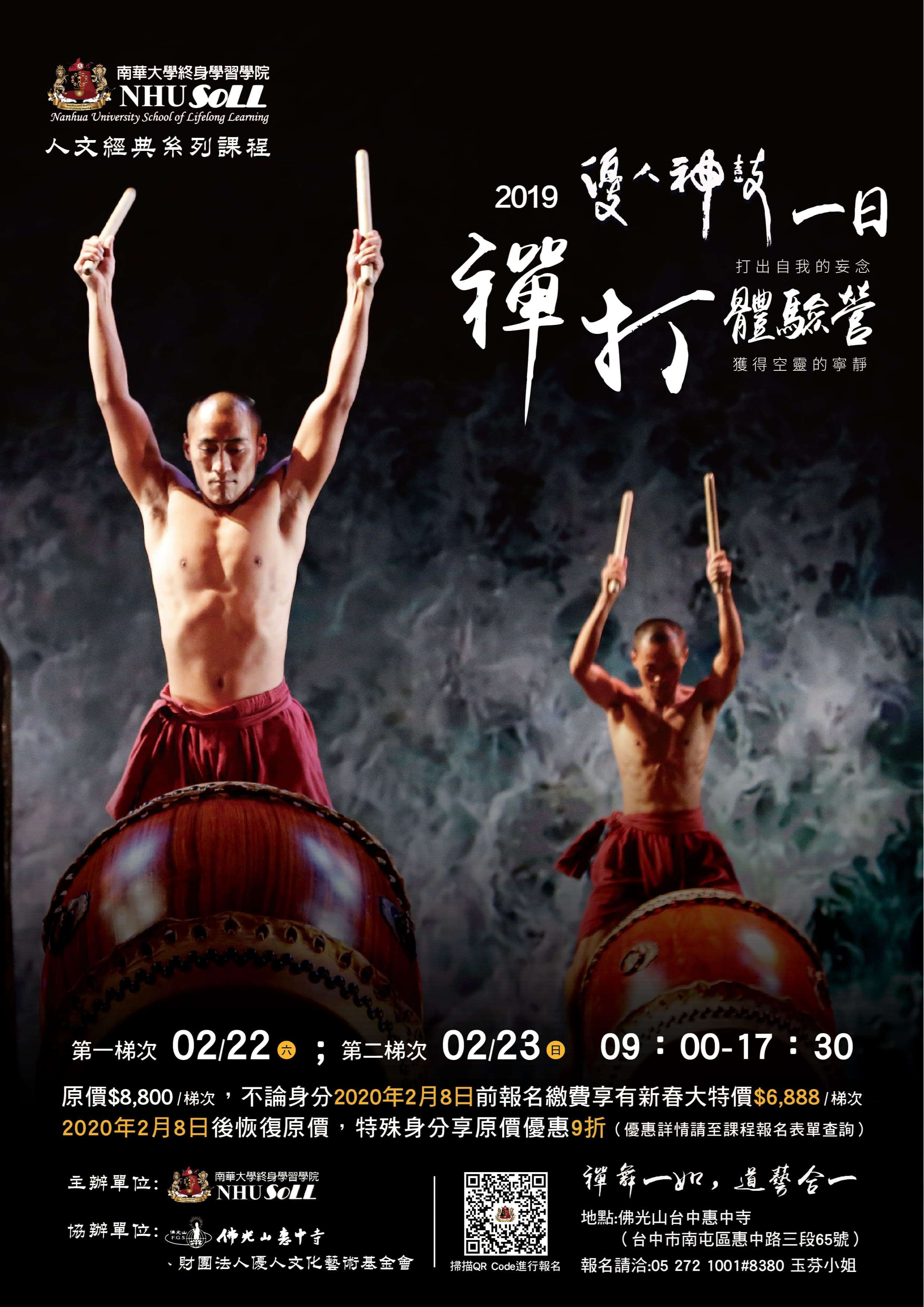 一、課程目的:透過三打(打鼓、打拳、打坐)的訓練,與自己的身心對話。