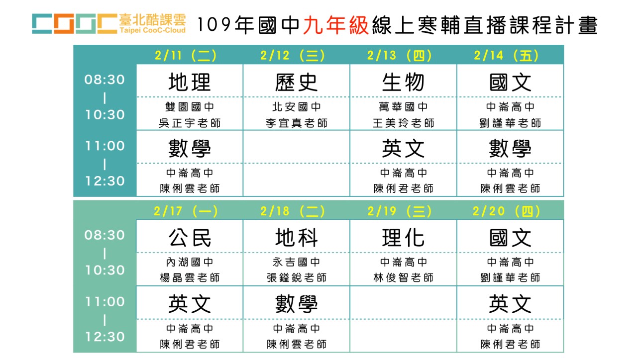 國九同學看過來!臺北酷課雲緊急加開『109年國中線上寒輔直播課程』!