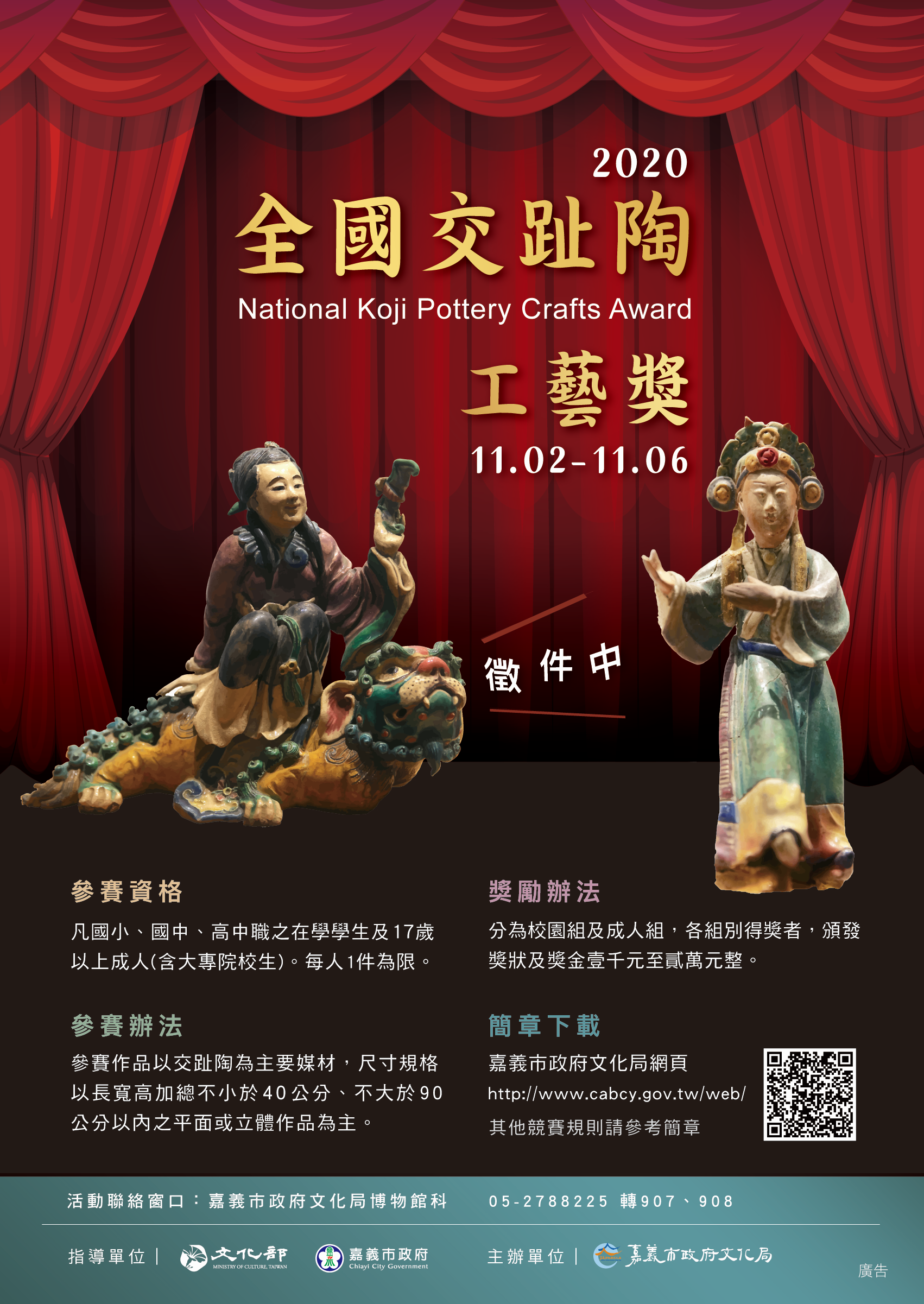 一、嘉義市是交趾陶的故鄉,為了延續傳承交趾陶特色工藝,鼓勵一般民眾參與交趾陶創作,本局提供校園及社會人士交趾陶創作競賽舞台,讓交趾陶的創作能量持續發揮。
