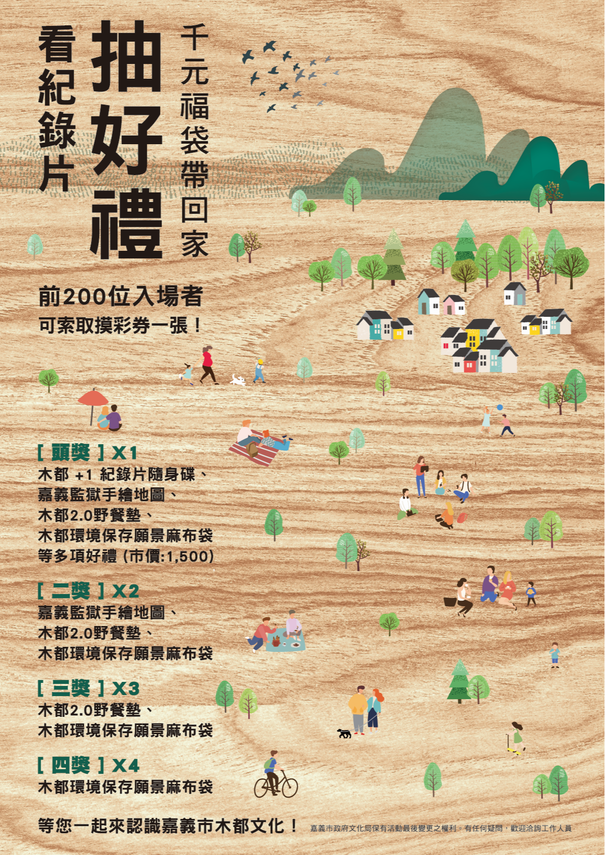 旨揭活動訂於109年11月28日(六)下午3時至7時,假行政院農業委員會林務局阿里山林業鐵路及文化資產管理處轄管之森林之歌,辦理成果展開幕、木業文化紀錄片首映會,並安排映後座談及福袋摸彩活動。為讓青年學子理解本市木業文化歷史脈絡,敬邀貴校師生及家長一同參與本活動。