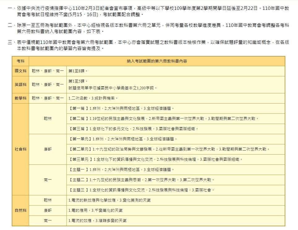 如題, 調整後之第六冊範圍如附件, 請同學提早準備。