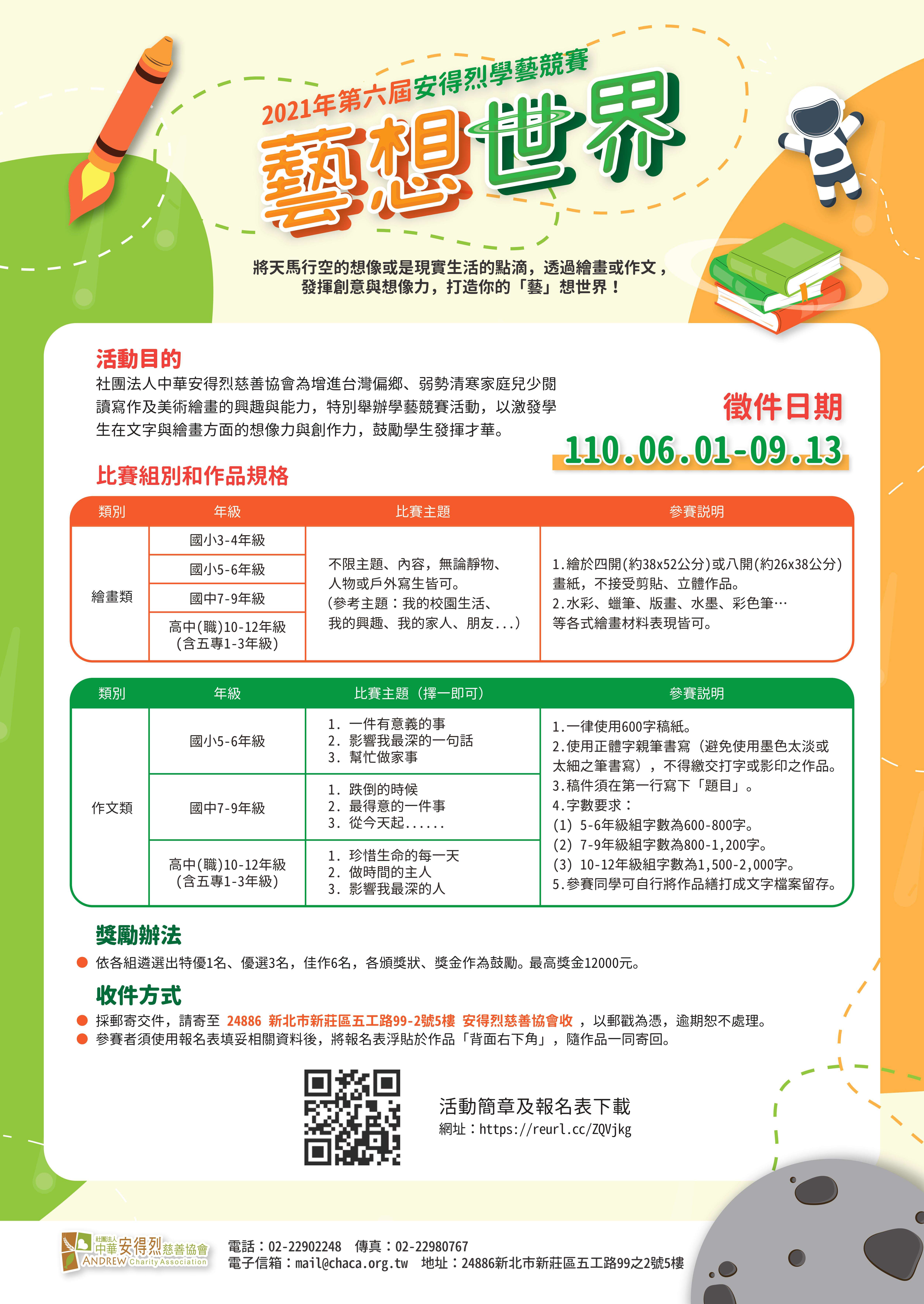 一、本協會為增進偏鄉、清寒弱勢家庭兒少閱讀寫作及美術繪畫的興趣與能力,特別舉辦「作文、繪畫」之活動,以激發學生在文字與繪畫藝術方面的想像力與創作力,鼓勵有志於相關領域創作的學生發揮才華。