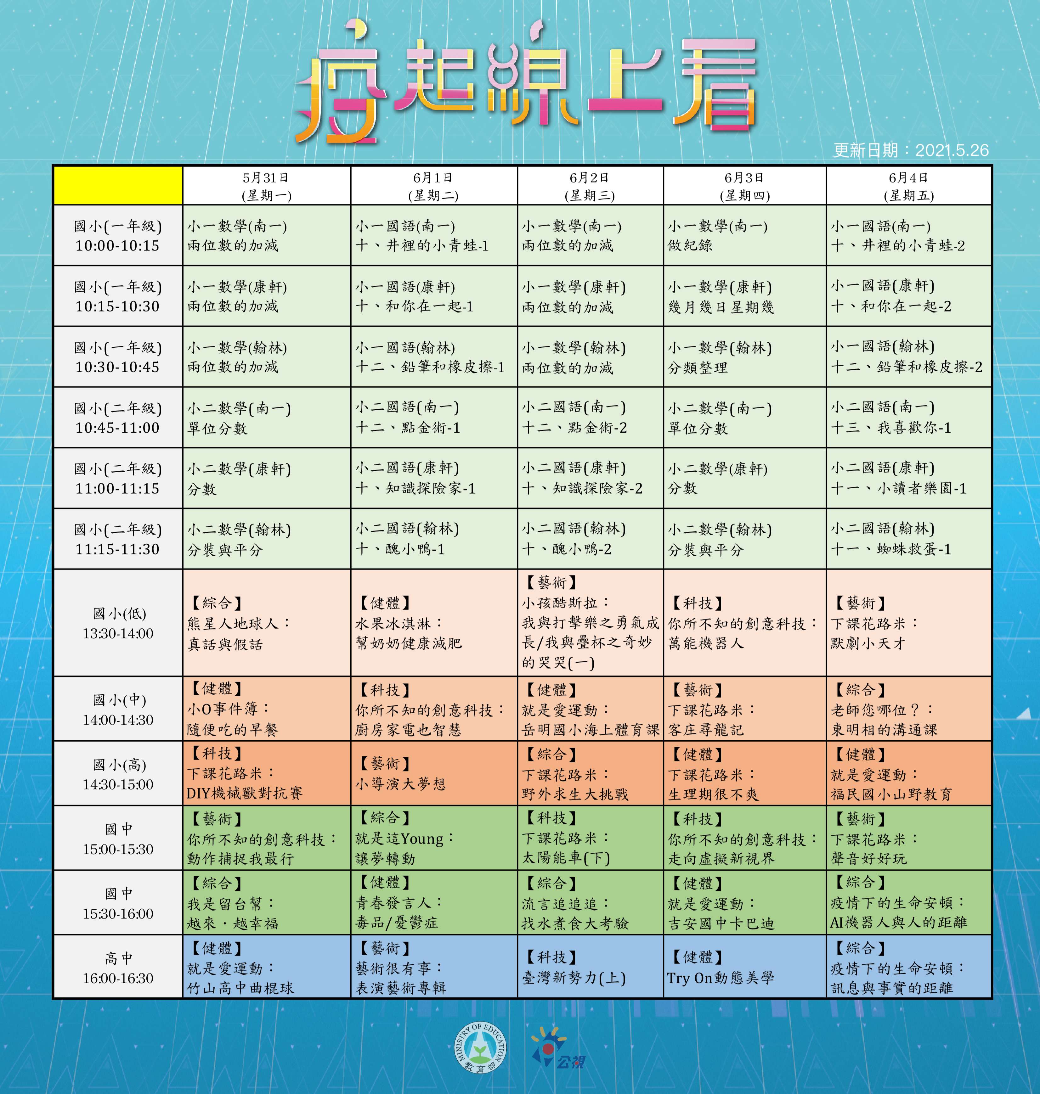 四、本次節目表為5月31日(星期一)至6月4日(星期五),後續節
