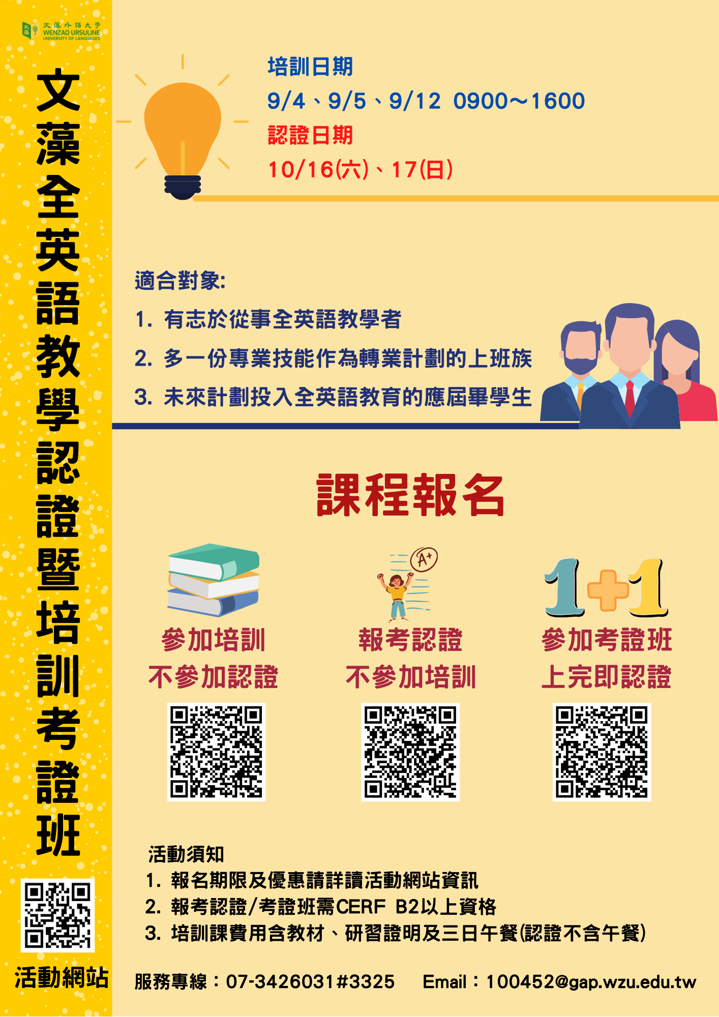 (一)為臺灣首創之全英語教學認證暨培訓課程(全英語授