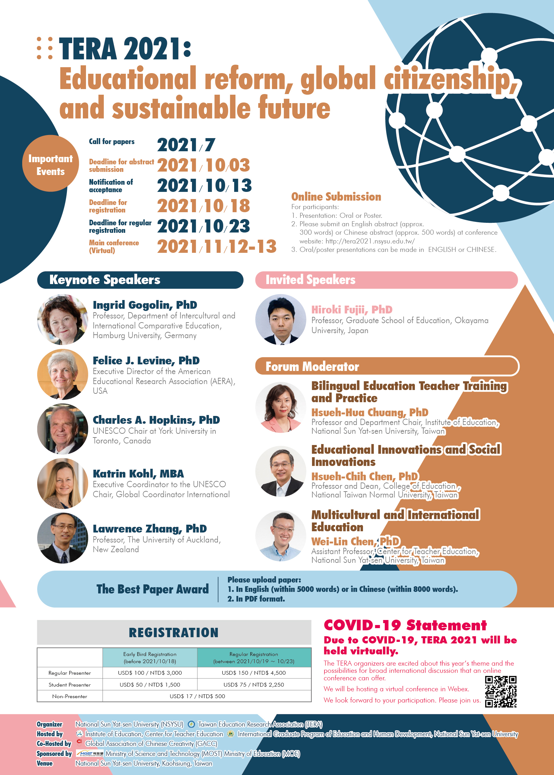 (六)報名詳情請參閱研討會網站: https://tera2021.