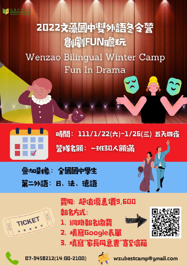 五、詳情可上本校推廣部網頁查詢:http://3L.WZU.EDU.TW,