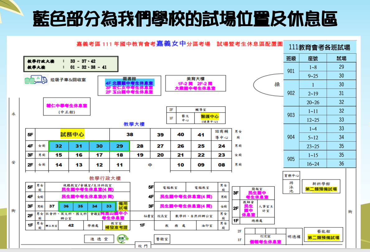 請國三生特別注意,可以從平面圖看自己的試場位置