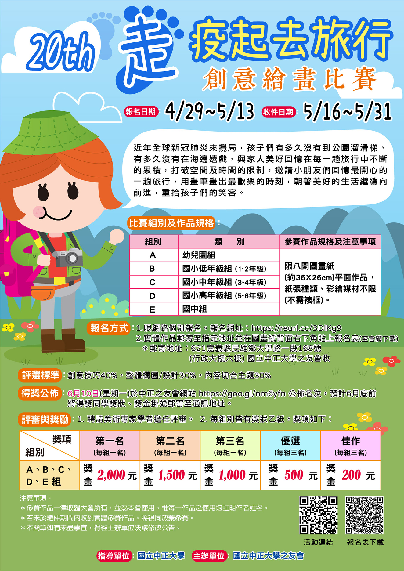 一、活動海報詳如附件,鼓勵學童踴躍參加。 二、報名網址:https://www.beclass.com/rid=2648a0b6268e8cd1c386。