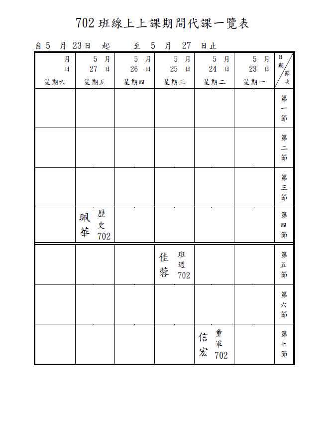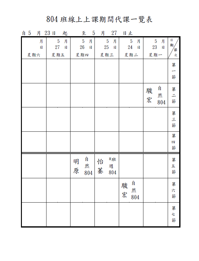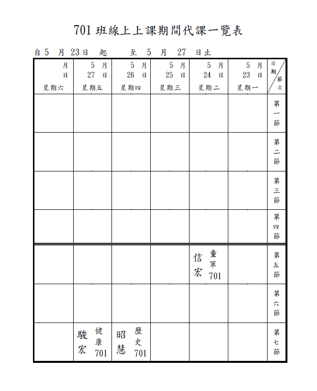 5/25(三)社團課:請各位同學點選社團老師的名字進入線上課程!!!