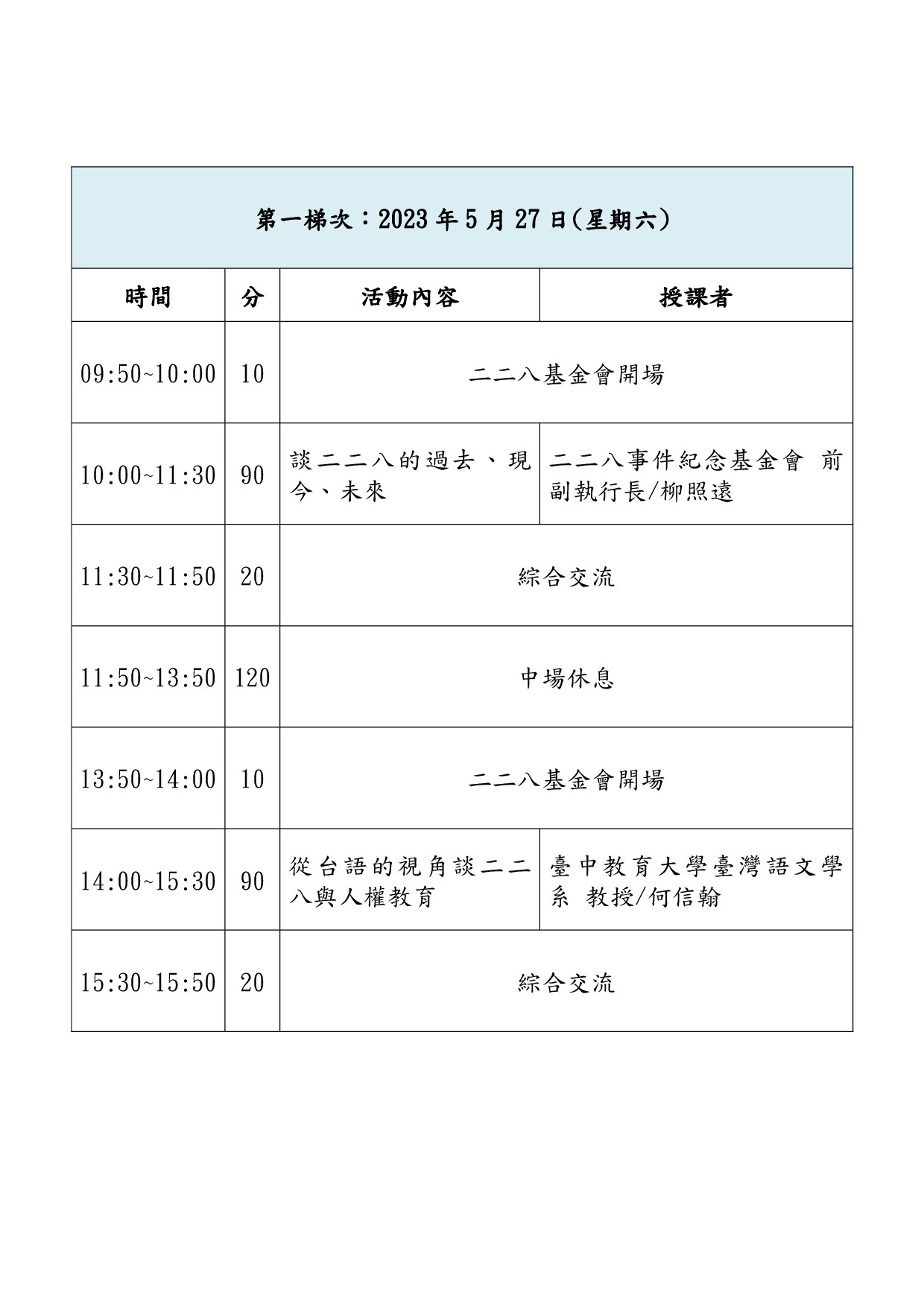 四、檢送「2023年二二八人權教師研習營」簡章及課程表供參。