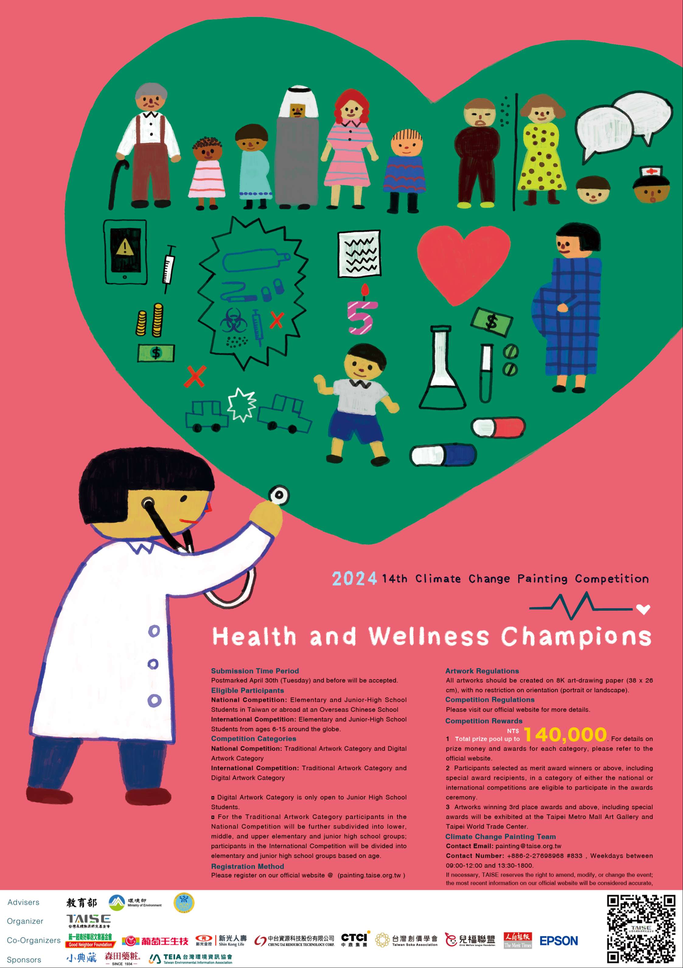 二、本屆(第14屆)為呼應聯合國永續發展目標(SDGs)的第3項,「健康與福祉」,以「健康小大使」為主題,提升師生對傳染病的認知並共同探討如何預防傳染疾病;同時學習健康的生活方式、情緒管理等等,亦須充分了解各項子目標的內容,攜手邁向健康、平安生活。此繪畫比賽也呼應第13項,採取氣候行動並提升大眾相關意識。