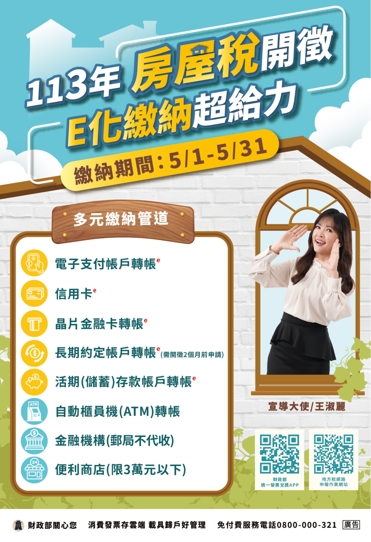 (一)113年房屋稅於5月1日開徵,繳納期限至5月31日止。