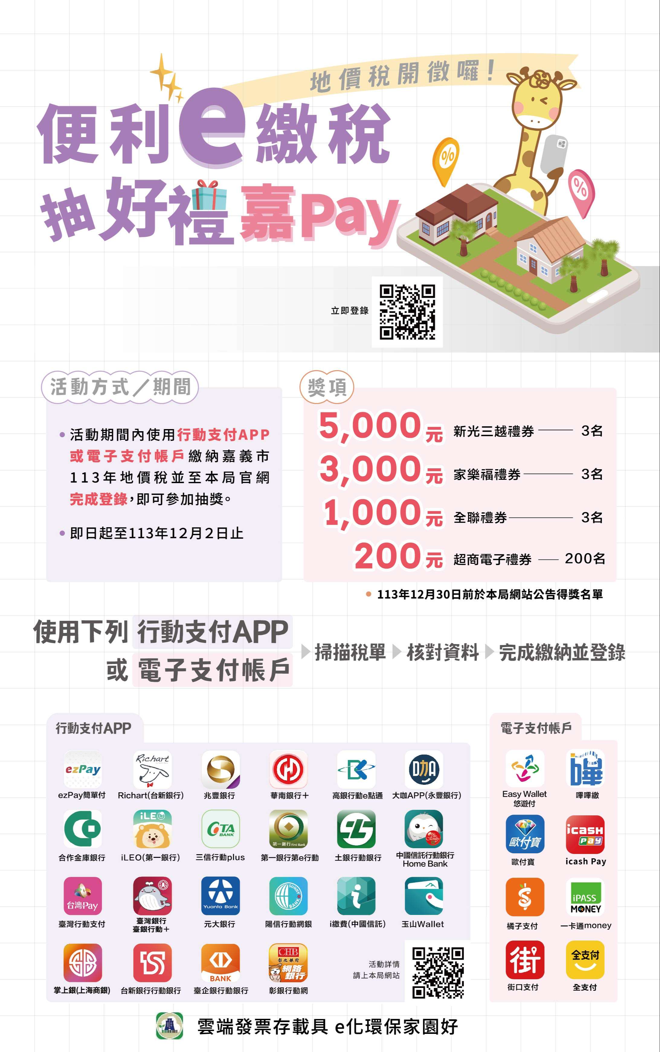 (三)「便利e繳稅 抽好禮嘉Pay」,12月2日前以行動支付或