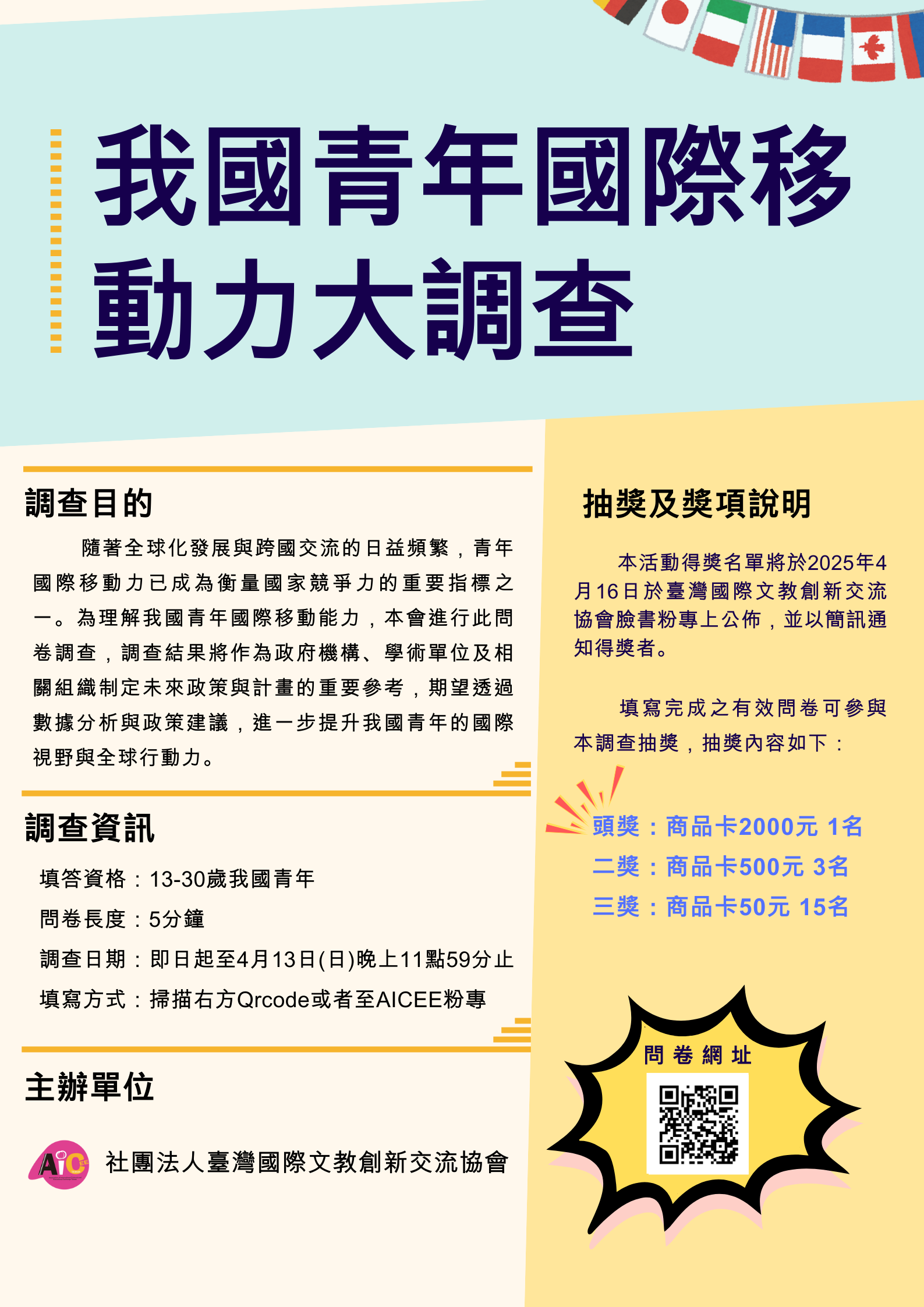 能力,特規劃「我國青年國際移動力大調查」