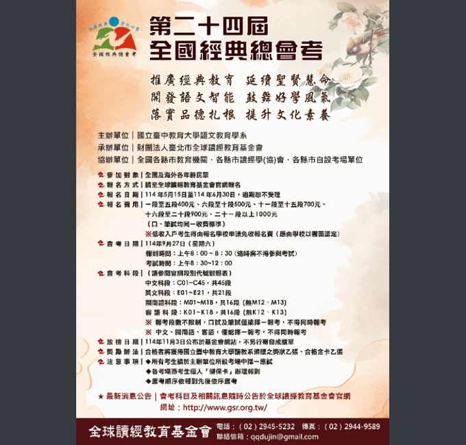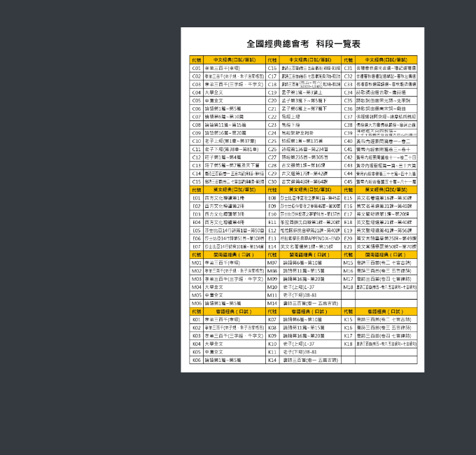 如題,檢附原始公文、科段一覽表及宣傳海報。