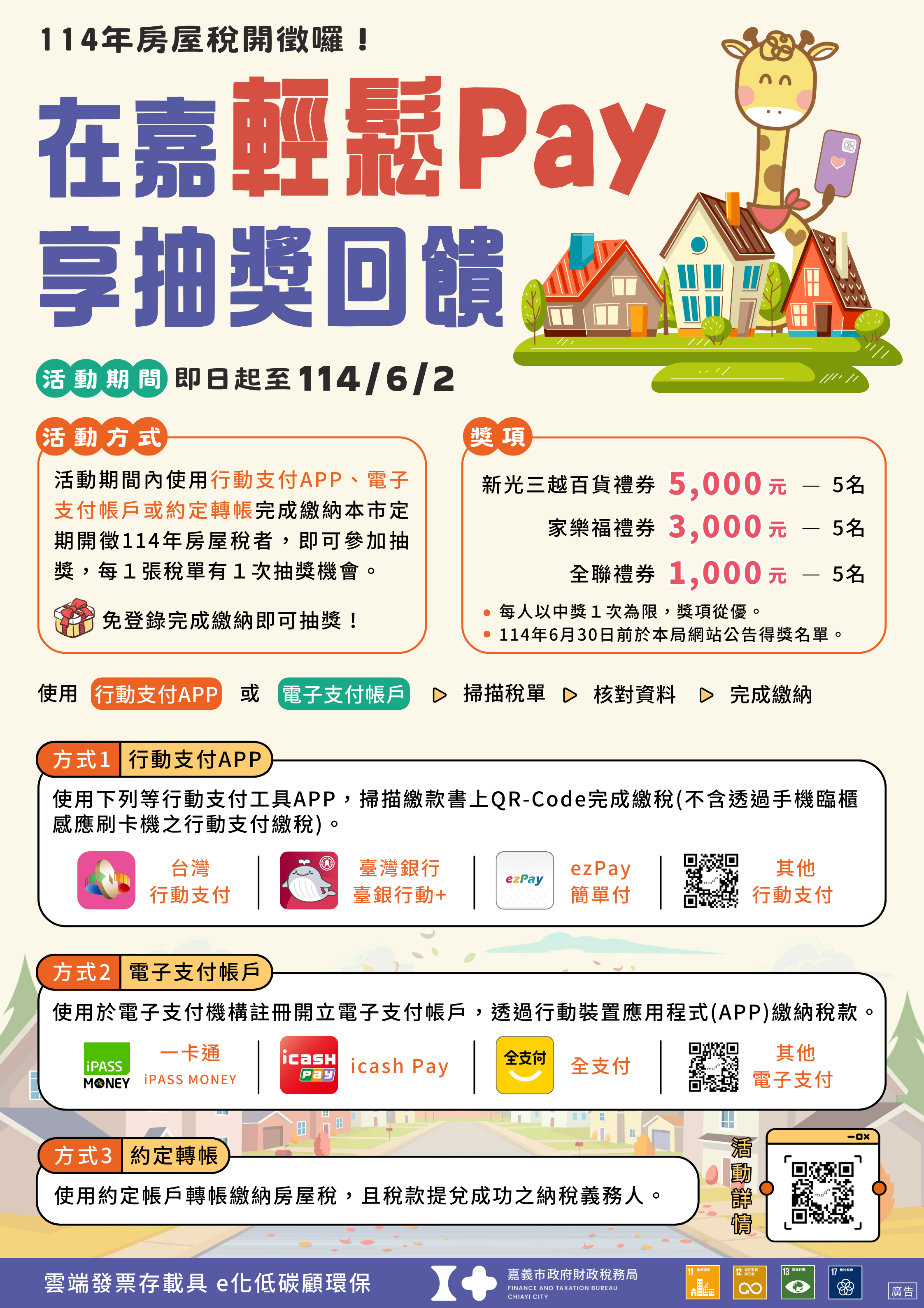 (三)「在嘉輕鬆Pay 享抽獎回饋」,6月2日前以行動支付、