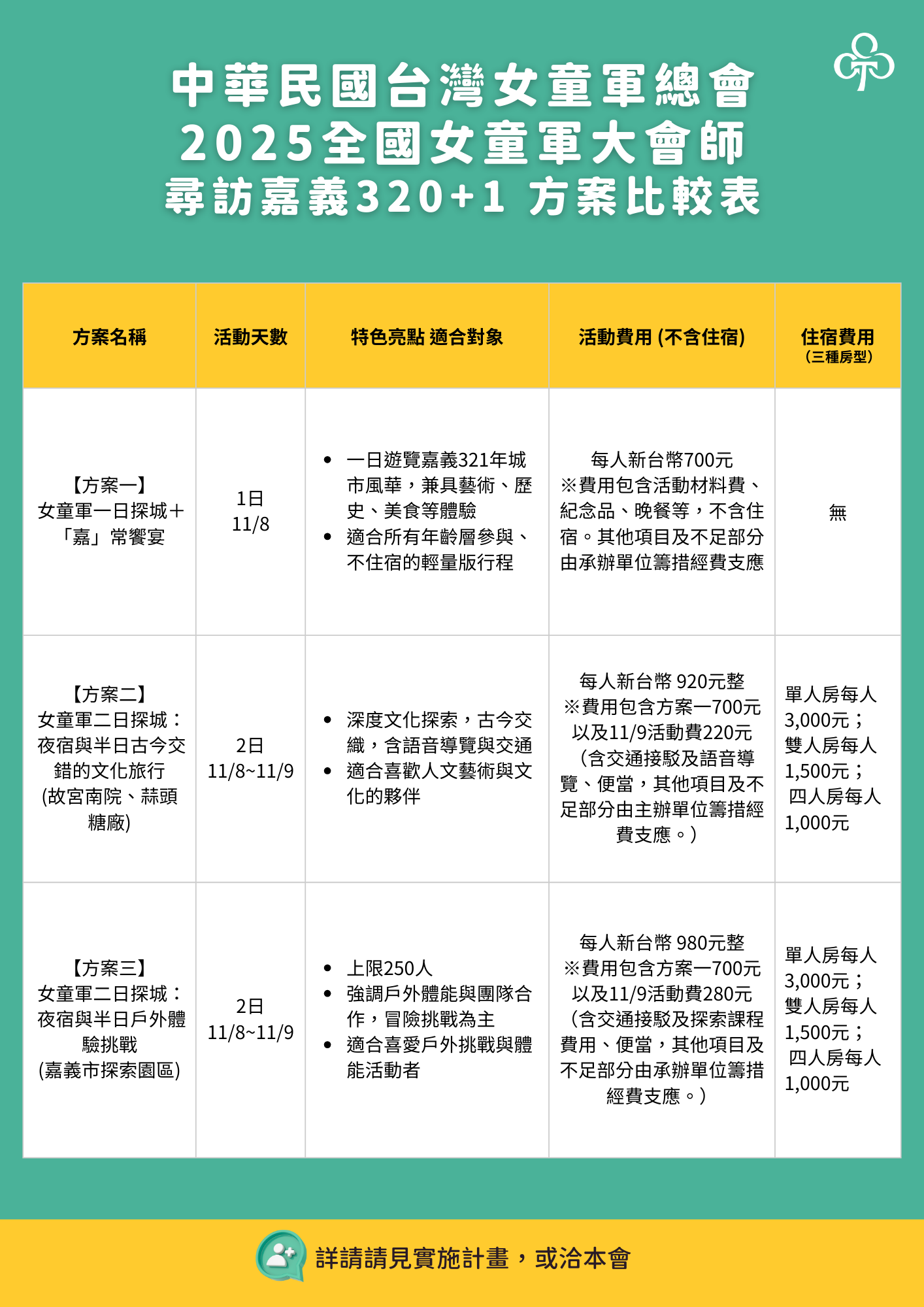 (一) ⽅案⼀《⼥童軍⼀⽇探城+「嘉」常饗宴》