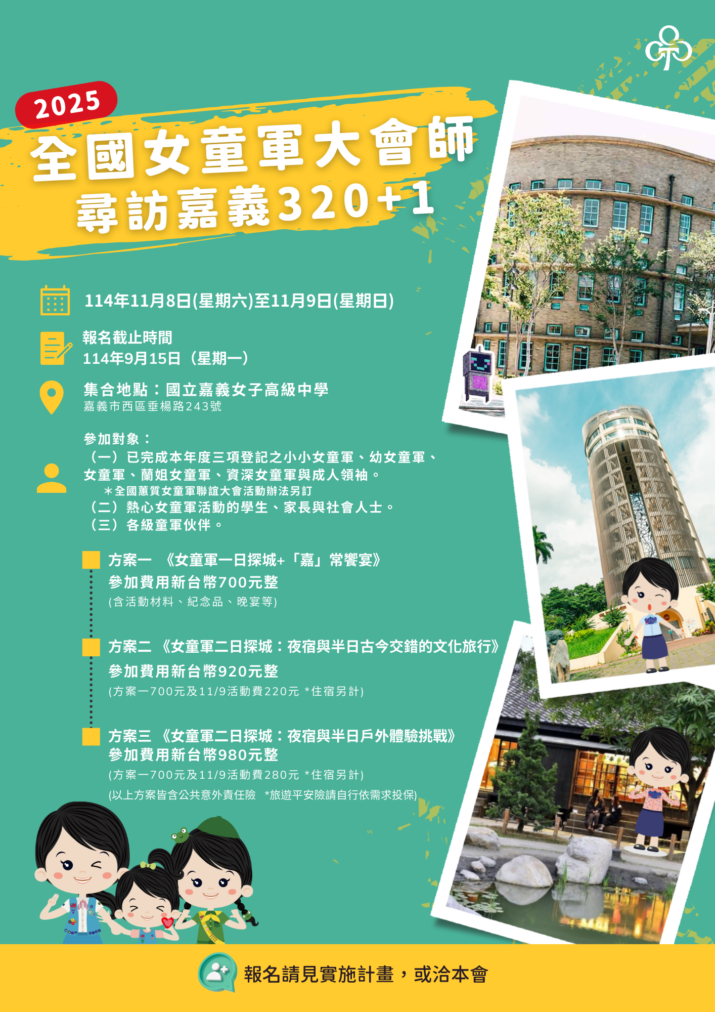 以下女童軍旅行活動鼓勵有興趣同學參加。欲參加者可於9/11日前向學務處報名。