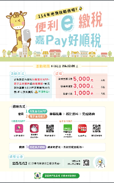 (三)「便利e繳稅 嘉Pay好順稅」,於12月1日前以行動支